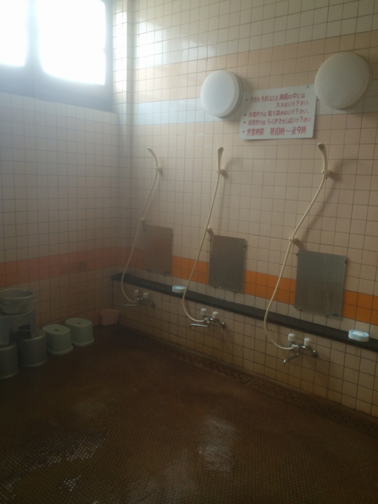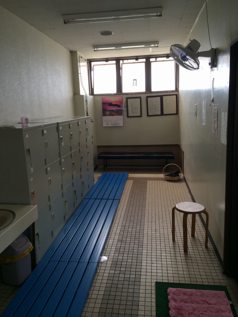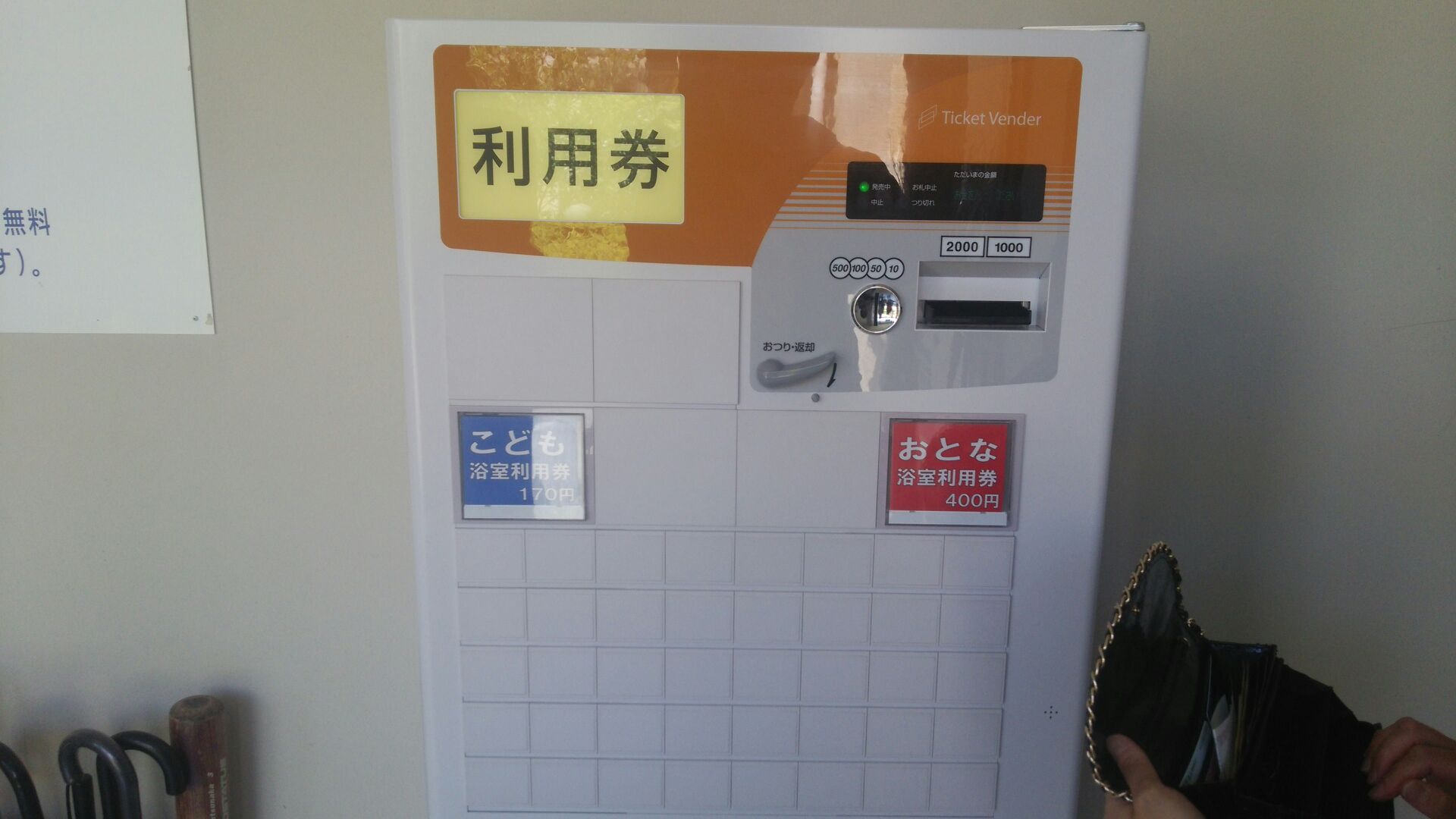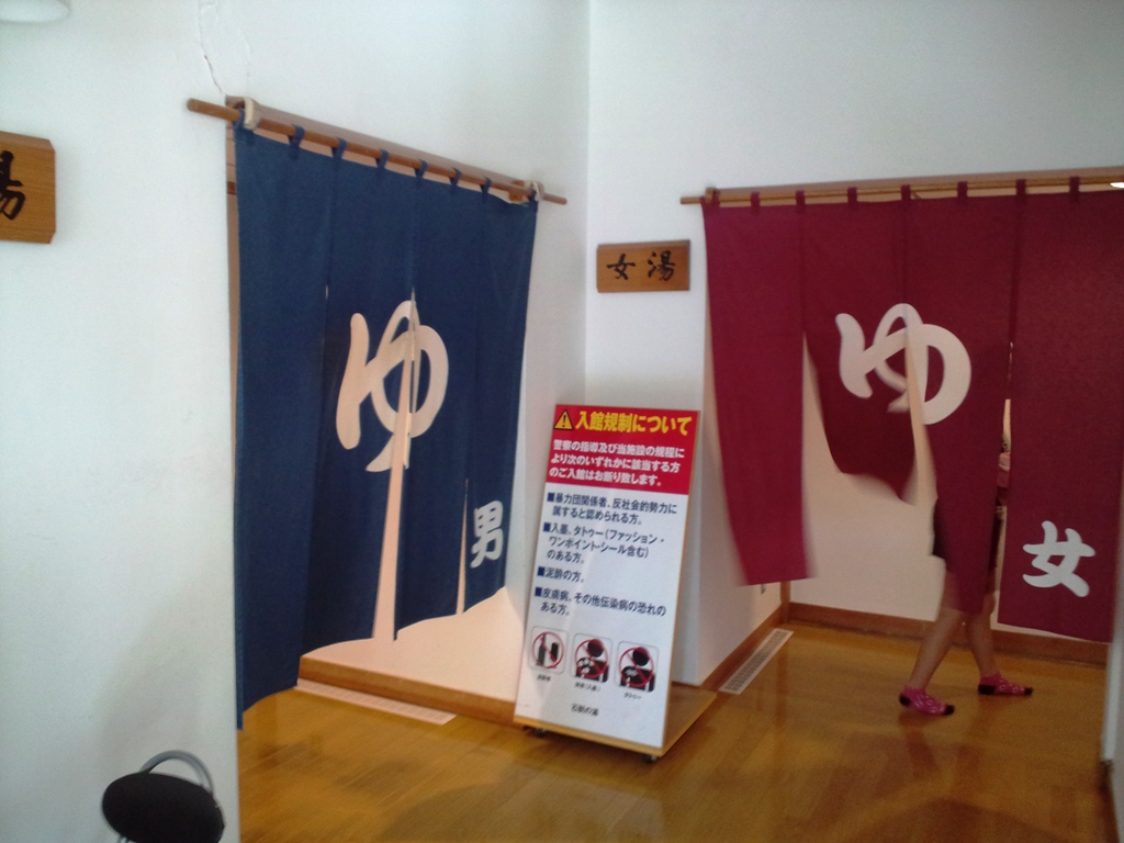 普通の公民館の様な建物の裏手に浴場入口が有り、券売機にて入場券を購入し受け付け!さー行くぞと思いきや、名前と住所を記入させられました。さすがお役所!![]()