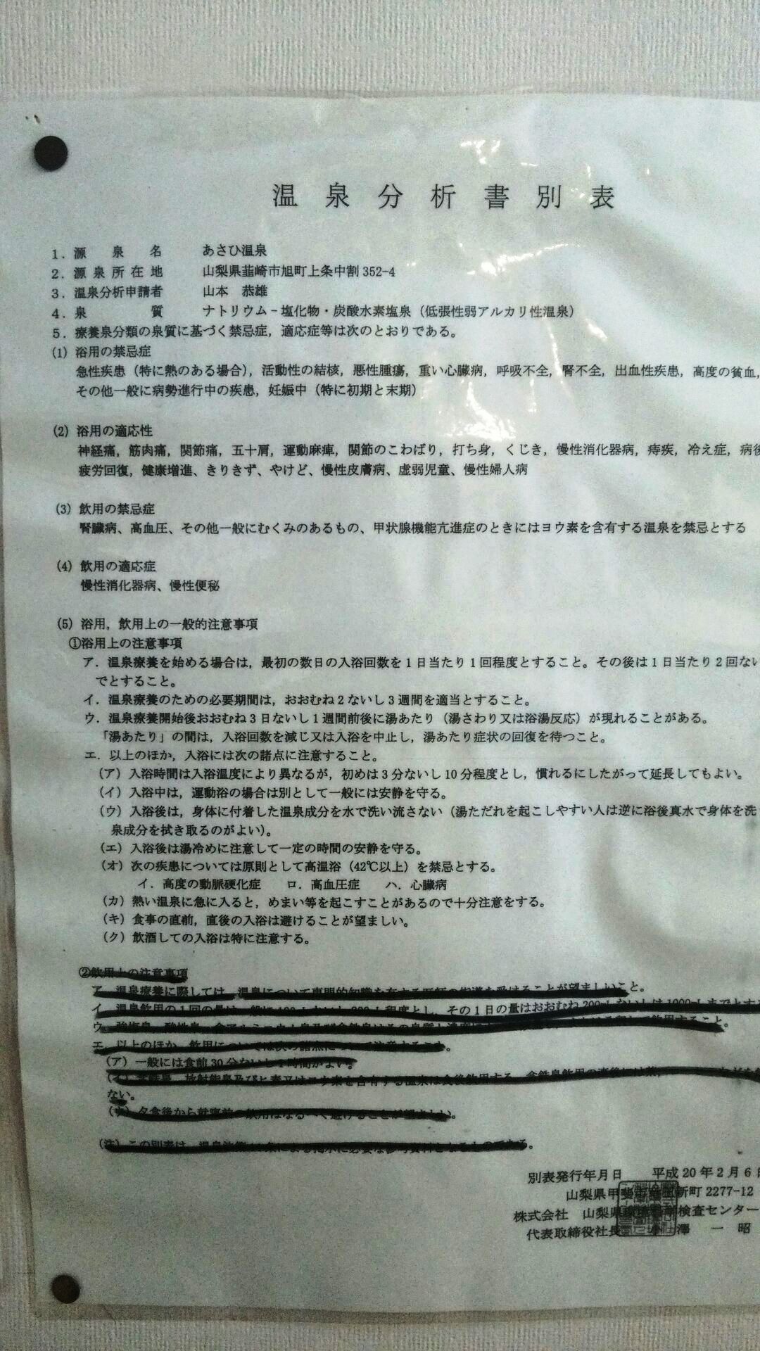 入口を開けると良い感じのモール臭がします。お湯は甲府特有の紅茶色で、詳細によると循環、消毒しているとの事でしたがカルキ臭は皆無です軽くオーバーフローもしているので最小限の対応だと思います。お役所にしては良い仕事してくれますね~!![]()