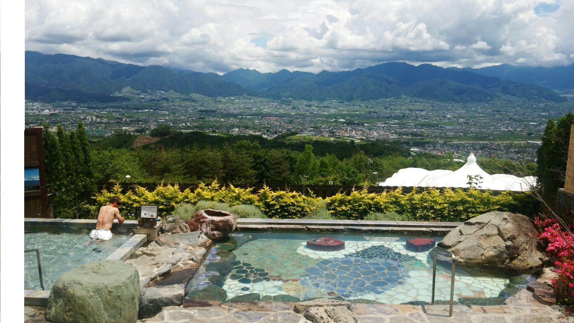 ただし眺めは良かったです。天気も良かったので甲府盆地を一望できました。しかし露天に浸かってしまうと垣根でなにも見えません。眺望を見ながらお湯に入りたい場合はカルキ臭の強い壷湯が超お勧めです。ってな具合でバランスの悪さが見てとれます。