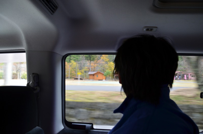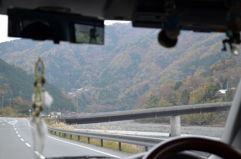 去年同様途中買い出しに寄り道、その後身延駅にて休憩した所までは良かったのですが、ハク部員が痛恨の車酔い!!座席をポロリ部員と入れ替わり助手席へ!そんな感じで早川町を登って行きます。