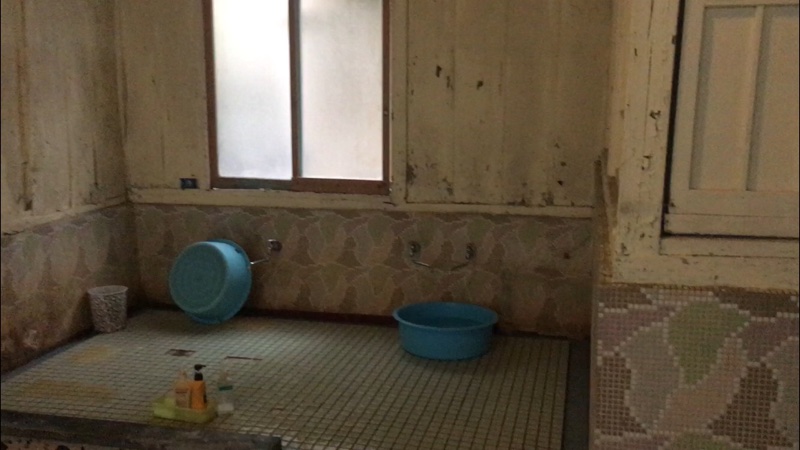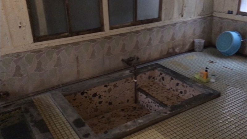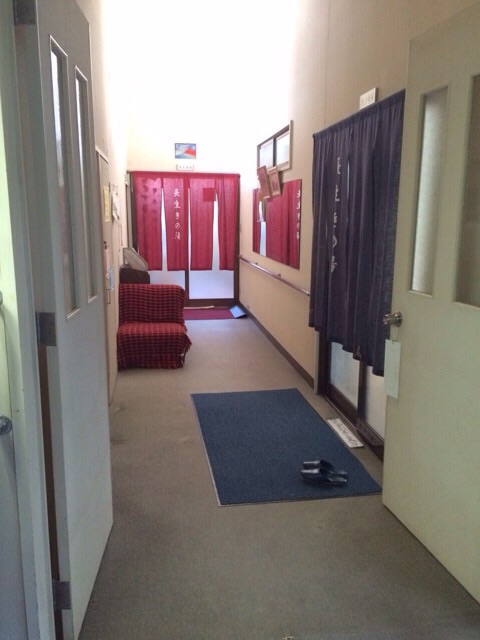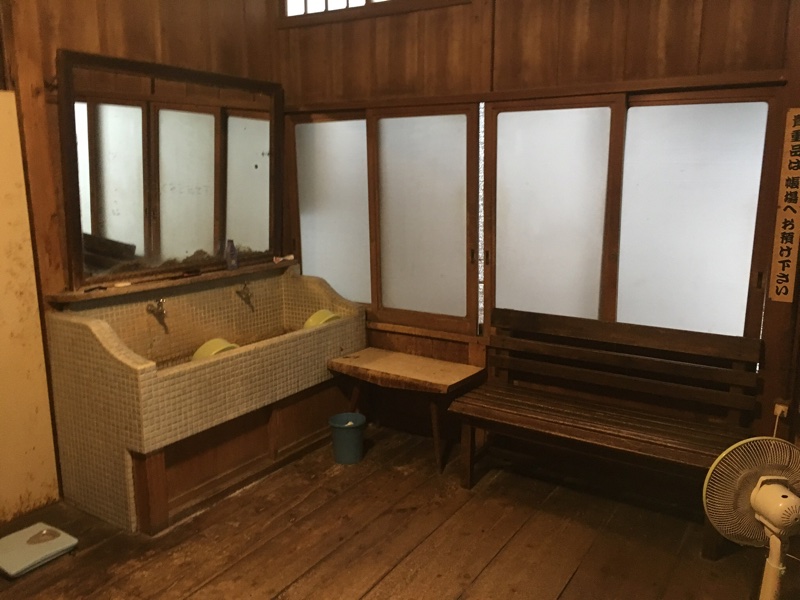 浴場は離れに有り昔、運動場だったろう場所の横を50mほど歩くと有ります。