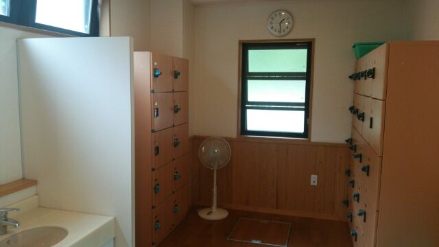 脱衣所は割と広いです。入口を開けるとなかなか開放的です。が少し匂うな!塩素臭が・・・