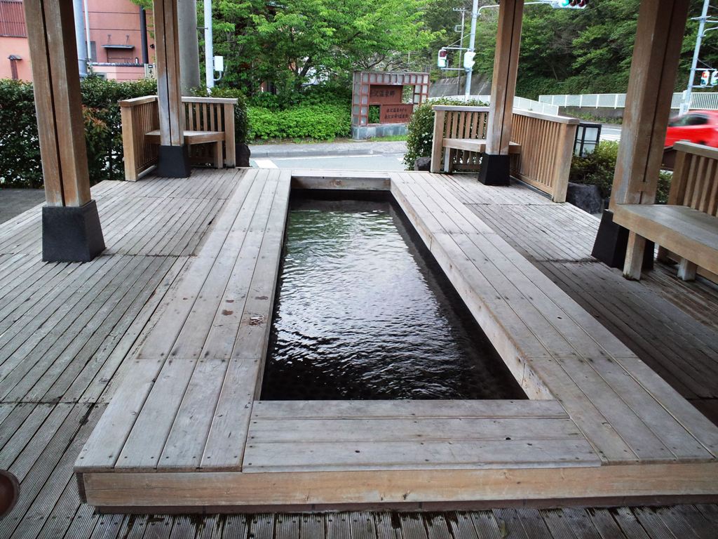 帰りに駐車場脇に足湯が有るのを発見!湯を取って臭いを嗅ぐと何か柑橘系のような良い臭い!ここが一番のお勧めだったのかもと思いながら伊豆を後にしました。